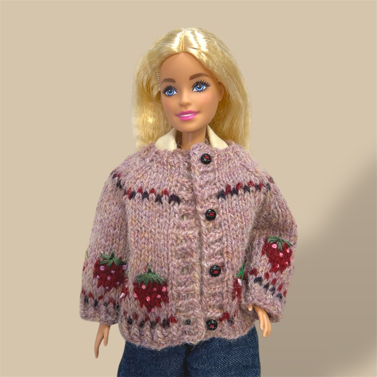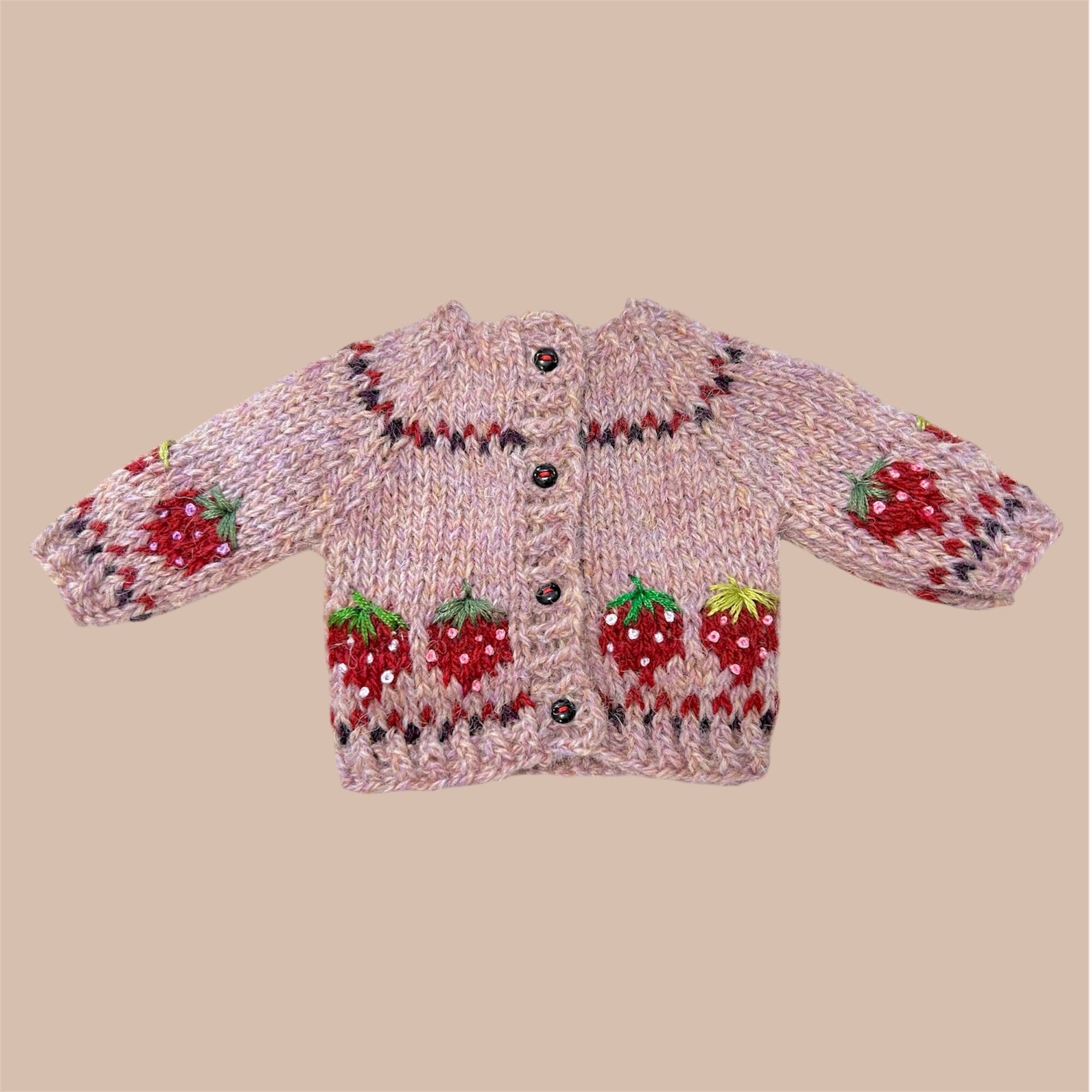 タミーちゃんサイズの苺モチーフのカーディガンです。