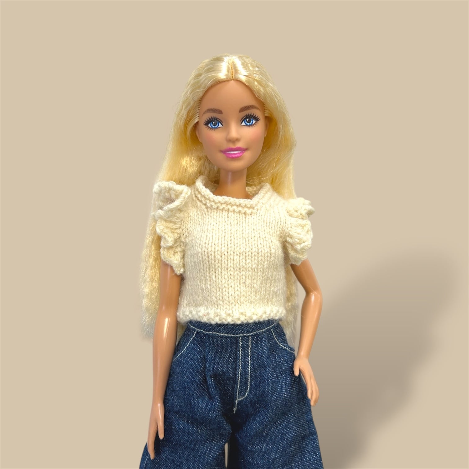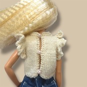 タミーちゃん、バービー サイズの肩フリルニットです。